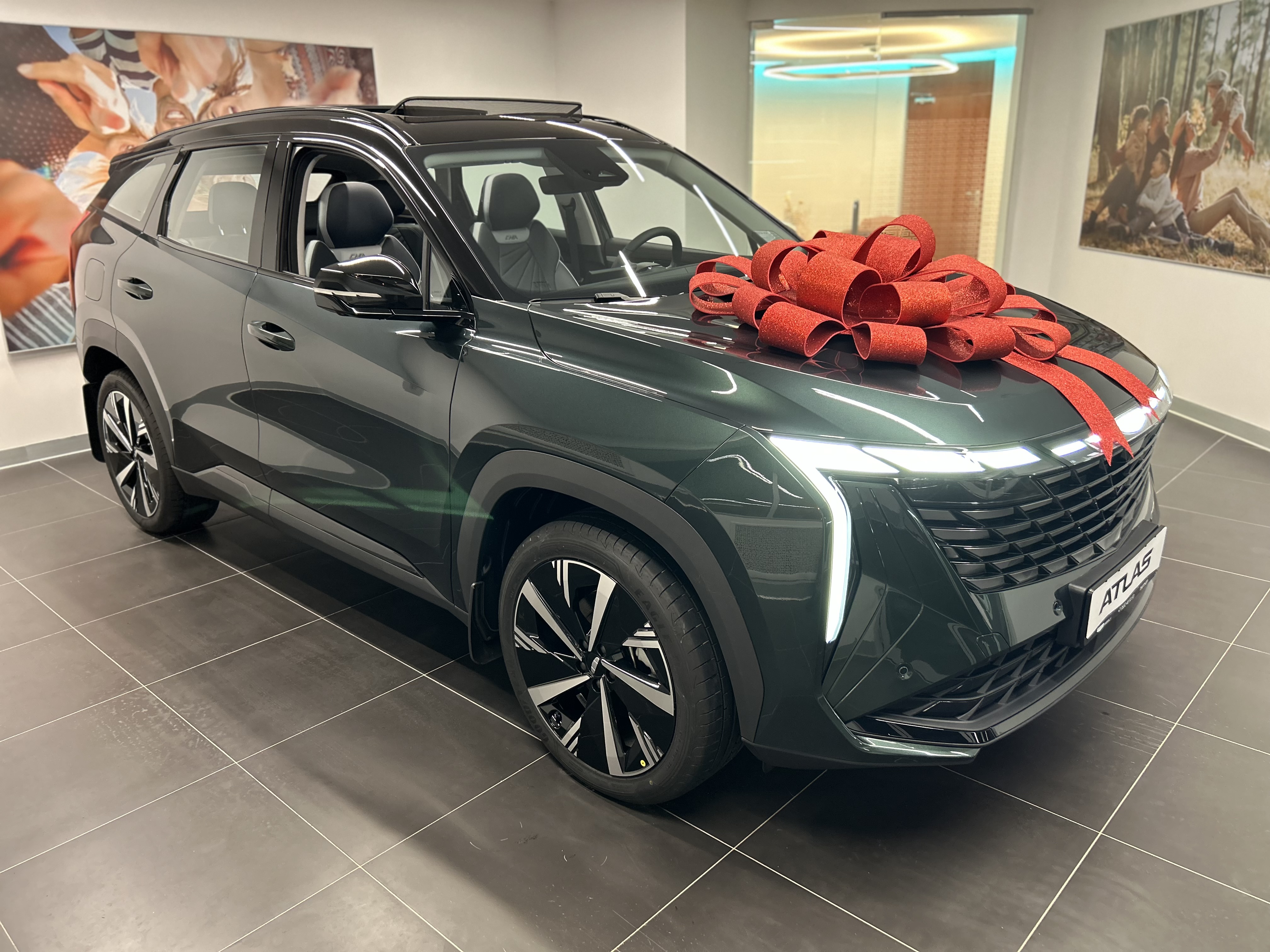 Элегантный дизайн и стильные детали, такие как светодиодные фары, 20-дюймовые диски и панорамная крыша, придают Geely Atlas II особый шарм.